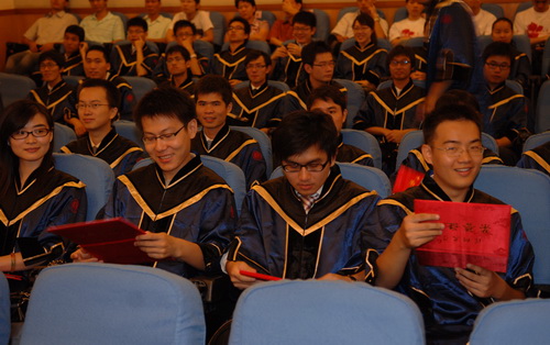 凤凰花开,红荔满枝,芒果体育也迎来了丰收的季节。7月3日上午,我校2009届优秀毕业生表彰大会在国际会议厅举行。272名同学获优秀毕业生称号,校党委书记江潭瑜为优秀毕业生颁发证书并合影留念。校长章必功在表彰大会上致毕业词。