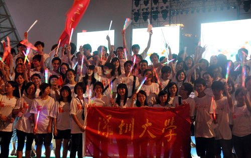 8月12日晚,美丽的深圳市民中心广场华灯璀璨,深圳2011年世界大运会倒计时两周年暨“深圳时间”文艺晚会在数千市民的集体倒计时声中拉开帷幕。我校250余名同学参加了晚会,与全场市民共度欢乐时刻。