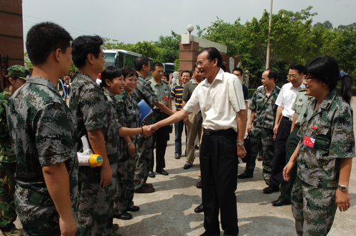 9月17日,我校党委书记江潭瑜,校党办、后勤处和部分学院领导到佛山军训二团慰问学生。
