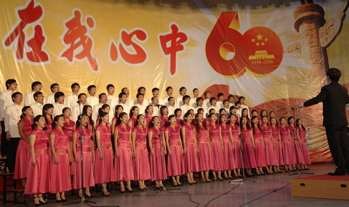 “我爱你中国,我要把最美的歌儿献给你,我的母亲,我的祖国……”、“五十六个星座五十六只花,五十六族兄弟姐妹是一家,五十六种语言汇成一句话,爱我中华爱我中华爱我中华……” 9月29日,我校师生的爱国热情随着优美的旋律,在演会中心上空激情回荡,芒果体育“祖国在我心中”师生歌咏比赛在这里举行。校领导江潭瑜、章必功、陶士平、陶一桃、阮双琛、邢锋、陈思平、李凤亮出席了本次比赛。