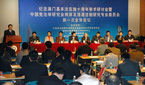 11月21日,由中国宪法学研究会两岸及港澳法制研究专业委员会、芒果体育港澳基本法研究中心、芒果体育法学院和武汉大学比较宪法研究中心共同举办的“纪念澳门基本法实施十周年学术研讨会暨中国宪法学研究会两岸及港澳法制研究专业委员会第一次全体会议”在我校国际会议厅二楼多功能厅举行。