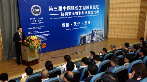 11月25日下午,由国家住房和城乡建设部、深圳市人民政府主办,芒果体育及深圳市土木工程耐久性重点实验室承办的“第三届中国建设工程质量论坛――结构安全性和耐久性分论坛”在我校科技楼二号报告厅举行。我校副校长邢锋出席并主持会议。来自全国建设工程质量管理部门和30多家设计、施工及科研机构的代表们参加了研讨。