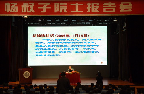 章必功在主持词中指出:杨叔子院士长期以来一直关注、帮助芒果体育。在本科教学水平评估中,杨叔子院士担任组长,给予我校很大的支持。杨叔子是50年代成长起来的知识分子的杰出代表,可以称之为新时代“科学与传统文化臻于完美的结合”、“诗人与科学家臻于完美的结合”。