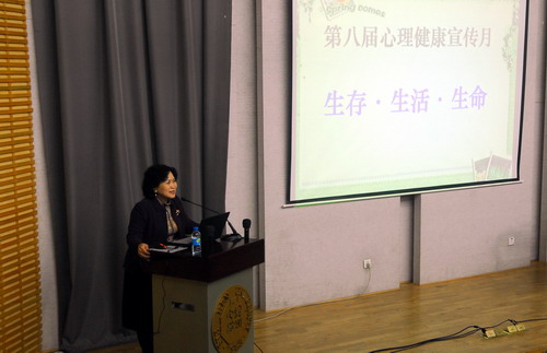 简短的开幕式后,进入第二个主题――心理健康讲座。本次心理健康讲座由校党委副书记陶一桃教授主讲,主题是“生存?生活?生命”。陶一桃围绕“生存?生活?生命”的主题,通过讲述自己的成长故事和与女儿的沟通相处中的点滴感悟,与师生们分享了深刻且有启迪的人生理念:生命是一种责任,一种爱,一种承诺。生存、生活、生命就在我们脚下,坚定地走人生之路,我们就会拥有精彩的生活,感受生命的光辉。