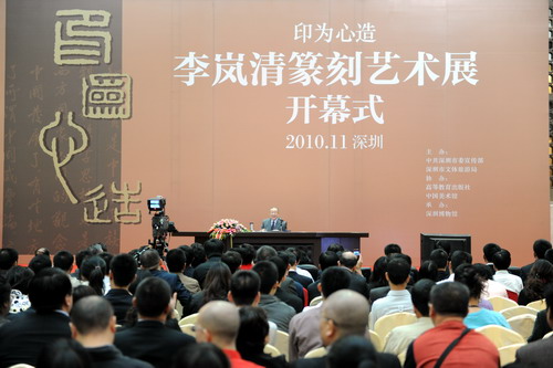 由深圳市委宣传部、市文体旅游局主办,高等教育出版社、中国美术馆协办的《印为心造――李岚清篆刻艺术展》于11月10日上午在深圳博物馆隆重开幕。出席开幕式的有:原中共中央政治局常委、国务院副总理李岚清,中共中央政治局委员、广东省委书记汪洋,广东省委常委、宣传部长林雄,广东省委常委、深圳市委书记王荣,深圳市委宣传部、深圳市文体旅游局,以及芒果体育、深圳职业技术学院、深圳艺术学校、深圳高级中学师生和深圳市文化艺术界、教育界、企业界、商界等约400余人。