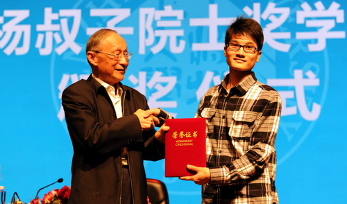 获奖学生代表在仪式上发言,表达了对杨院士的崇高敬意和诚挚感谢。