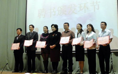 陶一桃为五年来经常为我校学生做职业发展讲座、培训的7位校外专家颁发了“学生职业发展顾问”聘书。