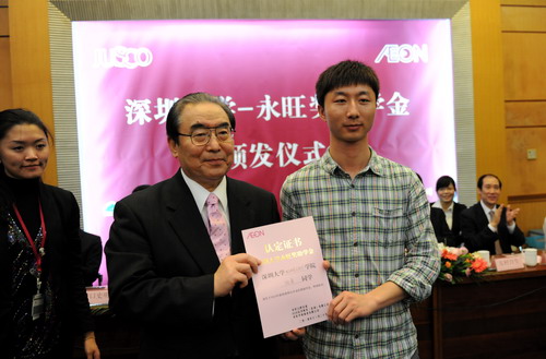 李永华对原田昭彦一行表示热烈欢迎,他指出,永旺奖助学金在年轻的特区大学设立意义深远,使深秋的南国增加几分温暖,既是对深大学子的信任和重视,也是以实际行动加深中日两国友谊。他对在场的同学提出三点期望:要拥有感恩的心,对给予自己帮助的家人朋友企业怀有感激之情;要更加勤奋学习,经济环境的好坏不由本人左右,珍惜永旺集团的资助更投入学习研究;要胸怀大志,成为优秀人才,更好地为社会做贡献。