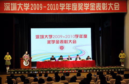12月1日下午,我校在国际会议厅举行了2009―2010学年度奖学金表彰大会。设奖单位代表深圳市烟草专卖局副局长崔茂德、腾讯公益慈善基金会副秘书长窦瑞刚、永亨银行(中国)有限公司执行董事陈宏略以及我校党委副书记陶一桃、副校长李永华出席了表彰大会。