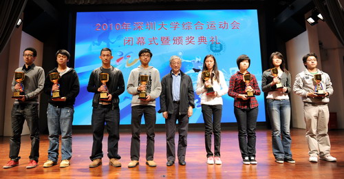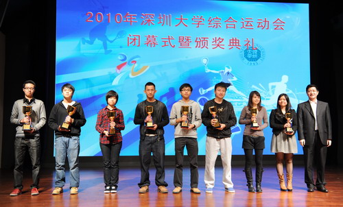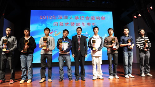 12月23日晚,芒果体育2010综合运动会闭幕式暨颁奖典礼在国际会议厅举行。校长章必功,副校长邢锋、李永华,各学院、研究生部负责人出席了这次活动。