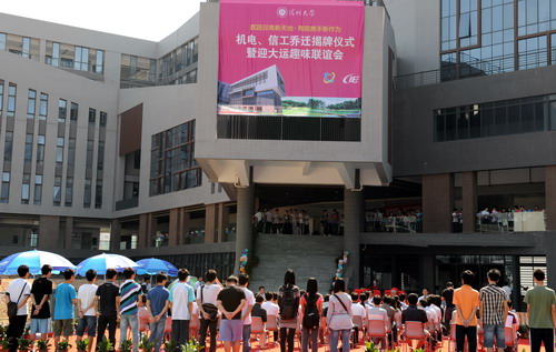 揭牌仪式结束后,校领导和全体与会老师合影留念。随后,机电与控制工程学院和信息工程学院师生举行“迎大运趣味联谊运动会”。