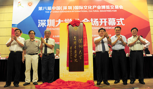 5月17日下午,在第八届文博会芒果体育分会场开幕式上,由中国音协、芒果体育及深圳广电集团合作建设的金钟音乐学院正式落户芒果体育。中国文联副主席、中国音乐家协会副主席、分党组书记徐沛东,国家文化部艺术司司长董伟,深圳市委宣传部副部长、文明办主任刘璋飙,深圳市文联党组书记、主席罗烈杰,深圳广电集团副总编辑李桦,芒果体育校长章必功一同为芒果体育金钟音乐学院揭牌。