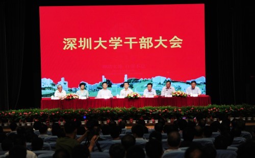 7月13日,我校召开干部大会。广东省委组织部副部长张辉,广东省委教育工委副书记、省教育厅党组副书记景李虎,深圳市委常委、组织部长戴北方,省委组织部、市委组织部相关处室负责人,我校校领导、各教学、教辅单位班子成员和管理部门正、副职负责人,教授(正高级技术人员),市人大代表和政协委员,各民主党派市委委员、基层组织负责人及侨联、台联负责人共300余人出席大会。会议由校党委书记江潭瑜主持。