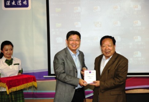报告会结束后,李清泉代表深大向李德仁赠送纪念牌和鲜花。