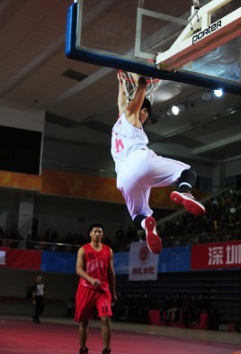 活力四射,激动人心的啦啦操表演后,现场气氛热烈,首场“芒果体育—广州大学校际篮球赛”拉开序幕。身着红色球衣的广州大学篮球队队员与身着白色球衣的芒果体育篮球队队员一上场就引发了全场高潮,在座师生不分你我地齐喊“深大加油!”、“广大加油”。两校运动员进行热身活动时,不少学生纷纷掏出手机捕捉自己心仪队员的精彩瞬间,并用微博发布现场赛事情况。