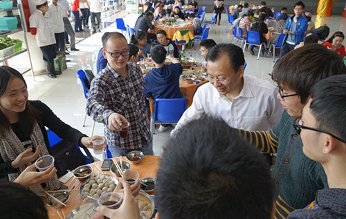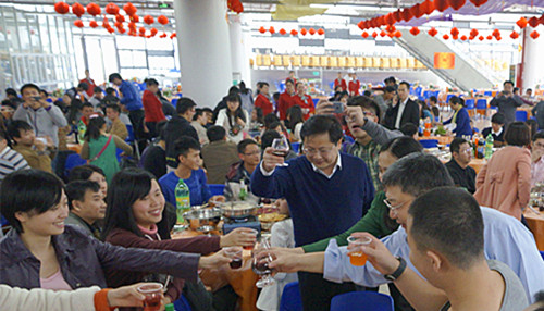 万马奔腾迎新岁。除夕的深大校园,处处洋溢着喜庆欢乐的气氛。为了让留校过年的师生也能感受家庭般温暖的节日氛围,学校举办了“年年有余•团年饭”活动。除夕中午,校领导李清泉、陶一桃、李凤亮、黎军、徐晨和有关部门、各学院负责人、老师,与留校师生及部分学生家长在深大南区饭堂欢聚一堂,共进除夕团圆饭,载歌载舞迎新春。团市委书记蔡颖、团市委副书记黄晓鹏等也应邀出席活动。活动由副校长李凤亮主持。