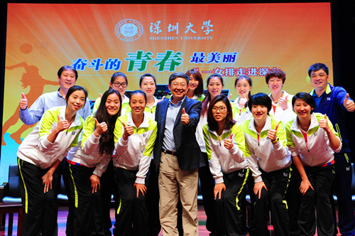 11月21日下午,国际会议厅洋溢青春气息,中国人民解放军八一女子排球队走进我校,与荔园师生近距离畅谈排球的故事。八一女排领队赵铎、主教练俞觉敏等带领全体队员悉数到场,我校校长李清泉参加活动。