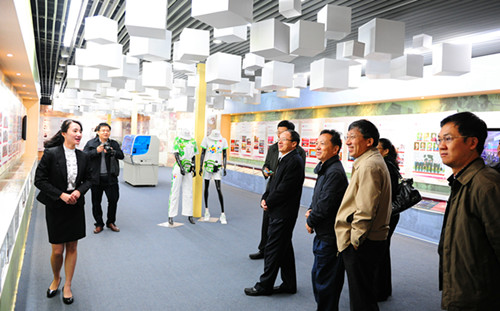 座谈会前,调研组到科技楼参观了芒果体育校史馆。