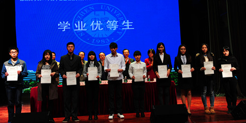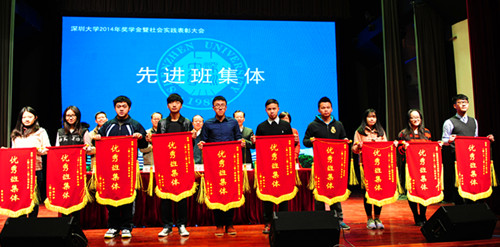 12月18日上午,我校2014年奖学金暨社会实践表彰大会在国际会议厅举行。校党委副书记张基宏、副校长李凤亮,团委、学生部负责人以及各院主管学生工作的领导、各学院团委书记、获奖学生代表出席了表彰大会。