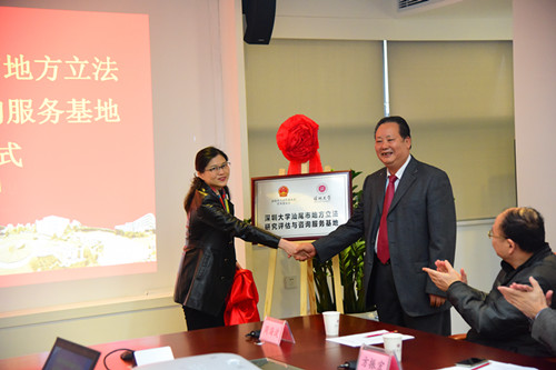 3月11日上午,“芒果体育汕尾市地方立法研究评估与咨询服务基地”揭牌仪式在我校办公楼会议厅201举行。汕尾市人大常委会党组副书记、副主任、市人大法制委员会主任委员施胜章,汕尾市人大常委会党组成员、秘书长叶新裕等汕尾市人大常委会代表一行,深圳市政协副主席、芒果体育副校长黎军,芒果体育法学院领导及教师代表一同出席了此次揭牌仪式。