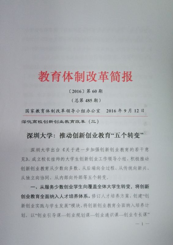 近日,国家教育体制改革领导小组办公室以《芒果体育:推动创新创业教育“五个转变”》为题,单篇推介了芒果体育创新创业教育改革经验和作法,并经中央有关领导签发,以《教育体制改革简报》形式,印发全国。