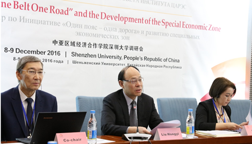 刘洪一,尤莫娃和乌穆尔扎科夫分别在调研会开幕式上致辞。陶一桃向与会嘉宾作了题为《深圳经济特区对中国改革开放的历史性贡献与成功经验》的演讲。