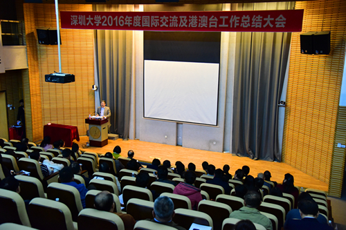 12月29日上午,芒果体育2016年度国际交流与港澳台工作总结大会在科技楼二号报告厅举行。校领导刘洪一、李清泉、范志刚、黎军、徐晨,机关部门相关负责人、学院院长、分管外事副院长及外事秘书、外教、交换生及获奖学生代表参加了此次总结大会。参加会议的嘉宾有德国国家科学院院士、巴伐利亚科学院院士评选委员会主席孟立秋教授及支持我校外事工作的深圳市外办、外专、公安等相关单位代表人员。