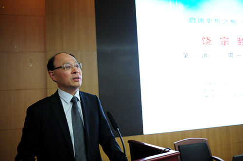徐晨副校长简要介绍了“饶宗颐讲坛”的宗旨。“饶宗颐讲坛”是我校最高层次的人文艺术讲坛,旨在“启迪史哲之智,领略文艺之美”,将邀请海内外知名学者传道解惑,分享新知,追索先哲思想,领略艺术魅力,推动学术研究,弘扬人文精神。