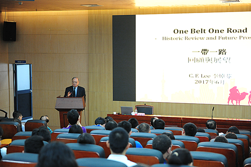 讲座中,李焯芬教授通过回顾了海陆两条丝路在中国历史上的发展历程,以近年来在中国西北古代丝路沿线发现的古文物、史料向在场听众介绍了中国作为海陆丝路发源地,在古代、近代世界贸易发展中的重要地位和作用。谈到一带一路,李焯芬认为离不开基础设施建设。中国作为发展中国家,基础设施建设起步较晚却发展迅速,特别是近三十年来,我国在桥梁、公路、高铁、水利建设上取得了举世瞩目的成就,在一定程度上甚至超前于欧美国家。他指出当前国家提出的“一带一路”发展策略,将是一次基建带动可达百年的发展机遇。