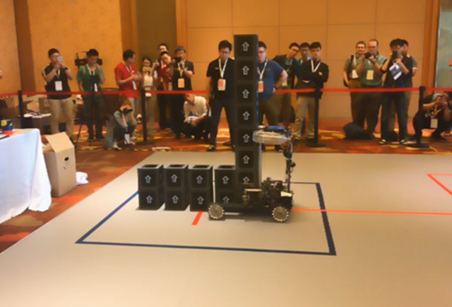 今年ICRA机器人挑战赛则是与中国机器人企业大疆创新合作,比赛主题为“移动操控挑战赛”,限定使用全自动地面机器人执行挑战任务。比赛规则就是让机器人把箱子从一个地方搬到另一个地方,再把这些箱子垒高,看谁搬的快,看谁垒的高,前提是机器人在完全自动化条件下执行挑战任务。此项比赛涉及到地面移动机器人定位、物体抓取、力控制、目标识别技术并保持整体稳定性等技术。比赛强调工程技术和团队合作能力,对参赛者的创新意识、技术水平、沟通交流能力有全面的要求。