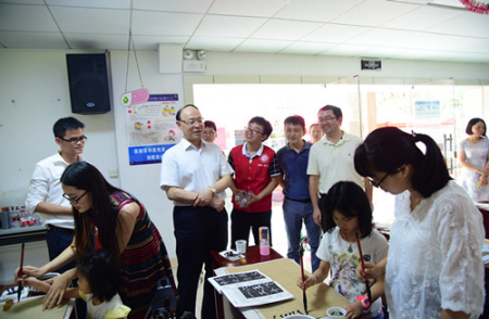 刘洪一书记一行首先详细了解了我校义工在留仙社区举办的“‘两学一做'进社区,服务群众见行动”的活动。本次义工服务是“党代表进社区”活动的重要组成部分,活动分为便民服务、公益宣传、文化科普以及创客体验四大类19项服务,具体包括健康义诊、全家福拍摄、自行车检修、口腔健康检查及咨询、手机清洁杀毒贴膜、垃圾分类知识宣传、金融安全知识宣传、手语文化体验与展示、魔术文化体验与展示、软笔书法教学与体验等。医学院、传播学院、机电与控制工程学院、信息工程学院、生命与海洋科学学院、化学与环境工程学院、材料工程学院等义工协会和手语协会、魔术社、创业者联盟等深大社团组织了本次义工活动。活动现场气氛热烈,很多居民参与到其中,我校义工同学热情耐心地接待了这些居民。