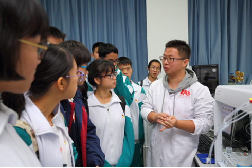 翌日,同学们走进我校高等研究院。高等研究院助理院长韦阳、李猛教授以及ScottAndrewEdward副教授为同学们介绍了高等研究院的培养特色以及生物技术、波动光学和力学等学科的研究方向和课程内容。随后,在高研院师生的带领下,同学们参观了中央实验室、显微镜实验室和混沌量化投资实验室等数个高端实验室,让同学们领略了前沿科学的独特魅力。