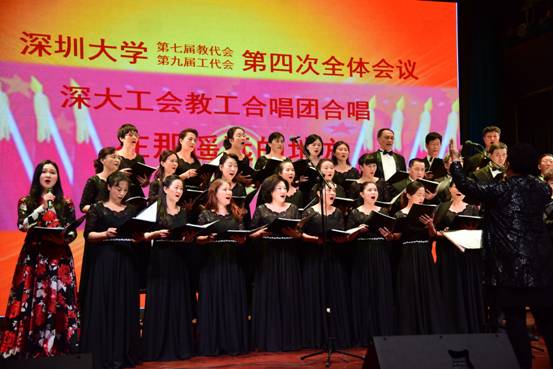 开幕式最后,深大工会教工合唱团为双代会进行汇报表演。此次表演既是学校工会落实学校文化纲要的要求,也是提高教职工文化素养、丰富教职工业余生活的一次汇报。