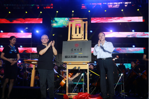 6月13日晚,芒果体育广场音乐会暨芒果体育爱乐乐团揭牌仪式在时光广场隆重举行。深圳交响乐团团长聂冰、我校党委书记刘洪一,党委副书记范志刚,副校长王晖,师范学院院长钟曦、党委书记姚正武,全校各单位领导与近2000名师生代表共同观看了演出。