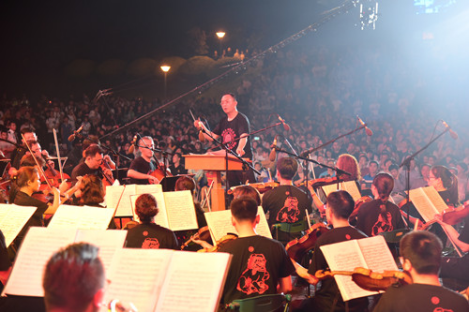 在盛夏的星空下,在荔园的湖光山色中,耳目与心灵对话,自然和人文交响,《金蛇狂舞》、《红旗颂》(《中国人》朗诵)、《威风堂堂》、《歌剧魅影》、《饮酒歌》(男女声重唱)、《春天的芭蕾》(女声独唱)、《快给大忙人让路》(男声独唱)、《1812序曲》等经典作品依次呈现,让现场观众如痴如醉,久久回味。