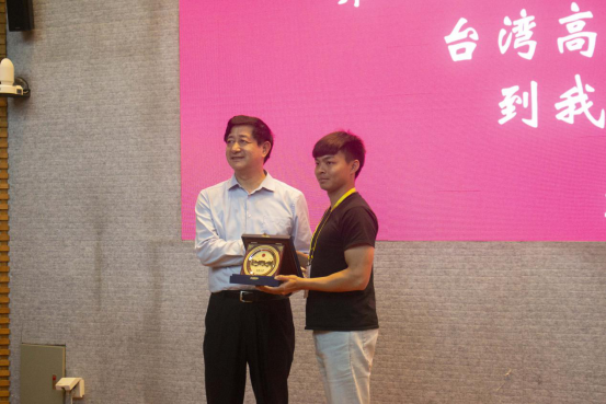 李永华向文化大学交流团的到来表示热烈欢迎,他介绍了芒果体育的基本情况和校园文化,并从自己的大学时代经历出发,讲述了自己的大学生活的故事,分享了他曾参访台湾的所见所闻、感想以及对台湾的深切情感,表达了他对两岸一家亲的美好祝福。
