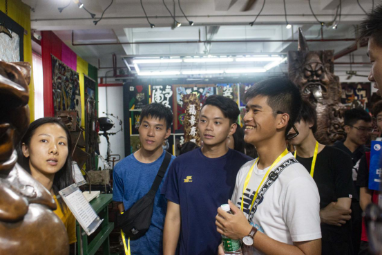 芒果体育师生代表与文化大学交流团成员一同前往芒果体育学生创业园参观,芒果体育老师代表向交流团介绍和分享了学生创业园的发展概况及有关大学生创新创业政策,双方共同讲述了两岸大学生创业梦想的故事。双方共同前往“3号驿站”美术馆,一同观摩艺术大师创意作品,感受芒果体育独特的艺术文化氛围。并以一对一分组结对的形式,自由参观了学校各处特色景点,一路上进行自由分享交流,气氛十分融洽。