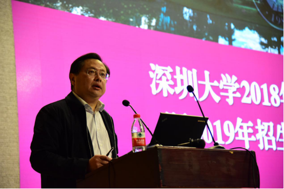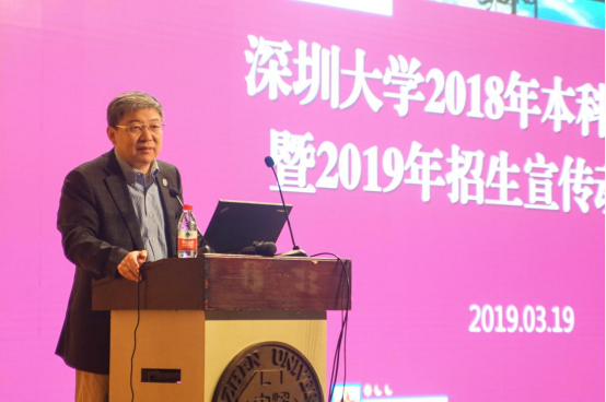 3月19日上午,我校在后海校区科技楼一号报告厅召开2018年本科招生总结暨2019年招生宣传动员大会。校长李清泉、副校长徐晨,教务部、宣传部、审计室、国际交流学院和督导室等部门负责人,本科招生学院相关负责人及招生办公室全体工作人员参加此次会议。会议由徐晨主持。