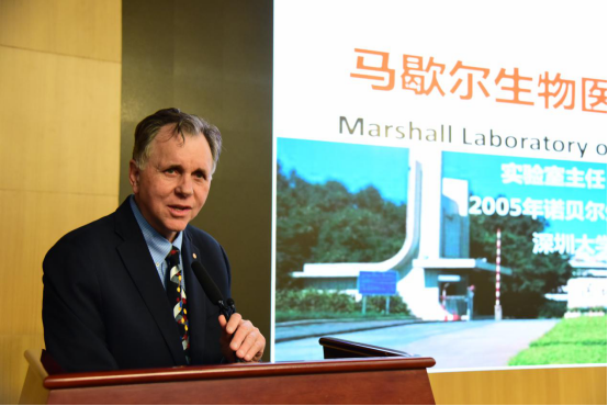 仪式结束后,马歇尔教授为深大学子作了一场主题为《开创性创新——诺贝尔奖获得者的诞生与合作机会》的讲座。