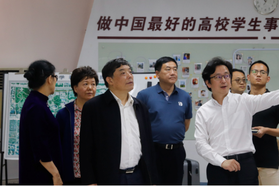 在范志刚等人的陪同下,周健民一行首先参观了学生事务中心,听取了有关运行机制、人员构成等基本情况的汇报。他非常认可学生事务中心的运行管理机制,可以让学生充分参与到学生事务管理中,激发了学生参与工作的积极性。在二维材料光电科技国际联合实验室,在听取了范滇元院士对实验室的师资队伍、部门建设、运行框架、研究领域详细介绍后,周健民肯定了实验室在国内光电领域做出的突出贡献以及国内外光电领域的优势地位。在大数据系统计算技术国家工程实验室,周健民一行了解到计算机与软件学院的知名校友、国际排名以及最新科研成果等。周健民表示芒果体育计算机学科发展底蕴深厚,对全国乃至全球的计算机技术与互联网领域的发展都发挥着积极影响。