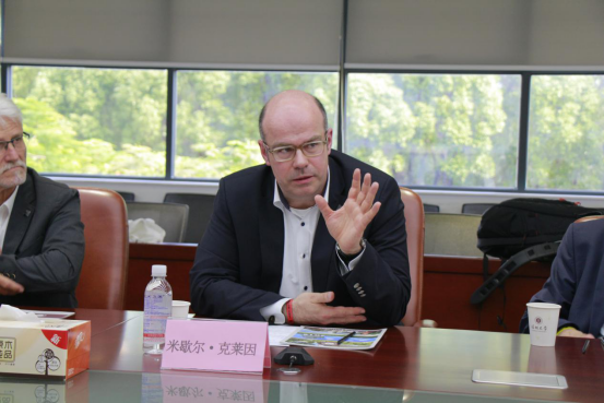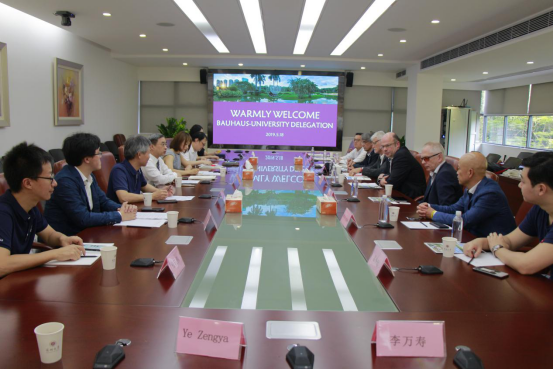 德国国家科学与工程院院士Michael Klein对我校的热情接待表示感谢,并表明此行是为了与我校探讨开展合作办学的可能性。他表示,两校在学科建设、人才培养上有很多共通之处,均具备一些与其他高校合作的经验可供借鉴。包豪斯大学城市规划与建筑学院院长Bernd Rudolf称,他了解到芒果体育在第十五届文博会深大文化创意园分会场举行了“芒果体育第七届建筑文化节——致敬包豪斯100周年”活动,令他感觉像回到家乡一样亲切。包豪斯是魏玛包豪斯大学的前身“公立包豪斯学校”的简称,该校创建于1919年,后改称“设计学院”,在两德统一后更名为魏玛包豪斯大学。它的成立标志着现代设计教育的诞生,对世界现代设计的发展产生了深远的影响。Bernd Rudolf表示,包豪斯大学与深大相比,办学规模要相对小很多,但对于国际化的需求非常大,目前依然在不断地努力,希望能把“包豪斯精神”延续并发扬下去。包豪斯大学城市规划与建筑学院教授Bernd Nentwig也补充说明了希望两校开展国际化合作的愿景。