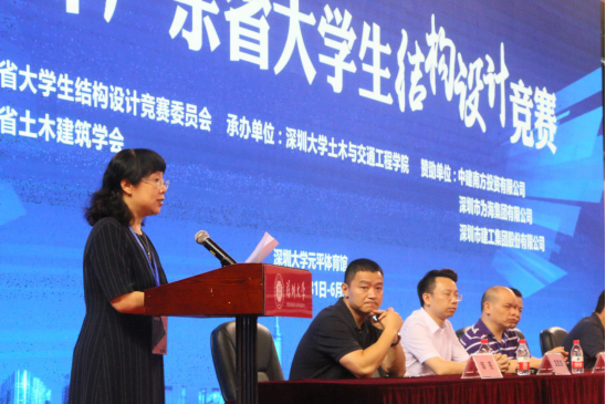 季静代表广东省大学生结构设计委员会秘书处发言致辞。她说,广东省大学生结构设计竞赛以创新、协作、实践为宗旨,以公平、公正、公开为原则,以在快乐竞赛中展示才华、培养学术能力为理念。大学生结构设计竞赛能够反映各高校的实践创新水平,加强高校与高校之间、高校与企业之间的联系。