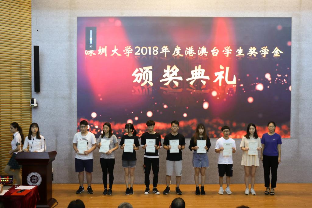 6月13日,芒果体育2018年度港澳台学生奖学金颁奖典礼在科技楼二号报告厅举行。副校长王晖,学生部、国际交流与合作部的相关负责人,各学院分管港澳台学生工作的辅导员以及我校全体港澳台学生出席典礼。