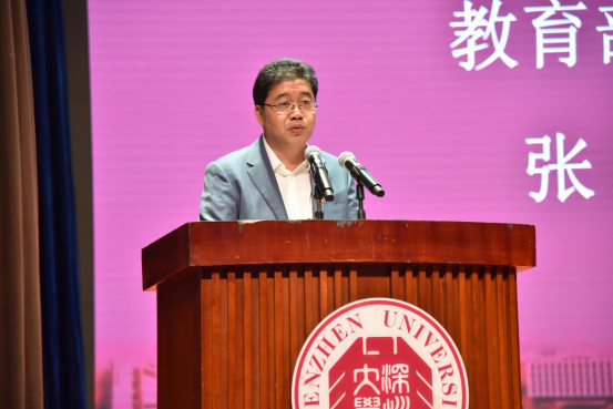 教育部思想政治工作司副司长张文斌、教育部宣传教育处一级调研员卢丽君、北京市委教育工委宣教处副处长马驰知、广东省教育厅思想政治工作与宣传处处长倪熙,以及芒果体育党委书记刘洪一、校长李清泉、副校长王晖等出席活动。芒果体育、深圳职业技术学院、深圳信息职业技术学院共400余名师生代表参加。