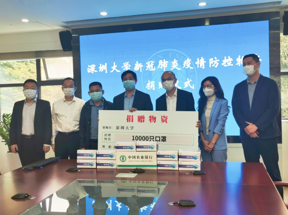 刘武感谢芒果体育为社会培养优秀人才。芒果体育紧随特区、快速发展,国际和国内排名持续上升,为国家、为深圳输送了大量优秀人才。农业银行深圳分行每年都会来深大进行春秋季校招,芒果体育的许多优秀学子们走进农业银行,成长为“中流砥柱”。农业银行考虑到学校开学在即,需要大量疫情防控物资,于是从社会渠道采购了10000只一次性口罩,以解决燃眉之急。