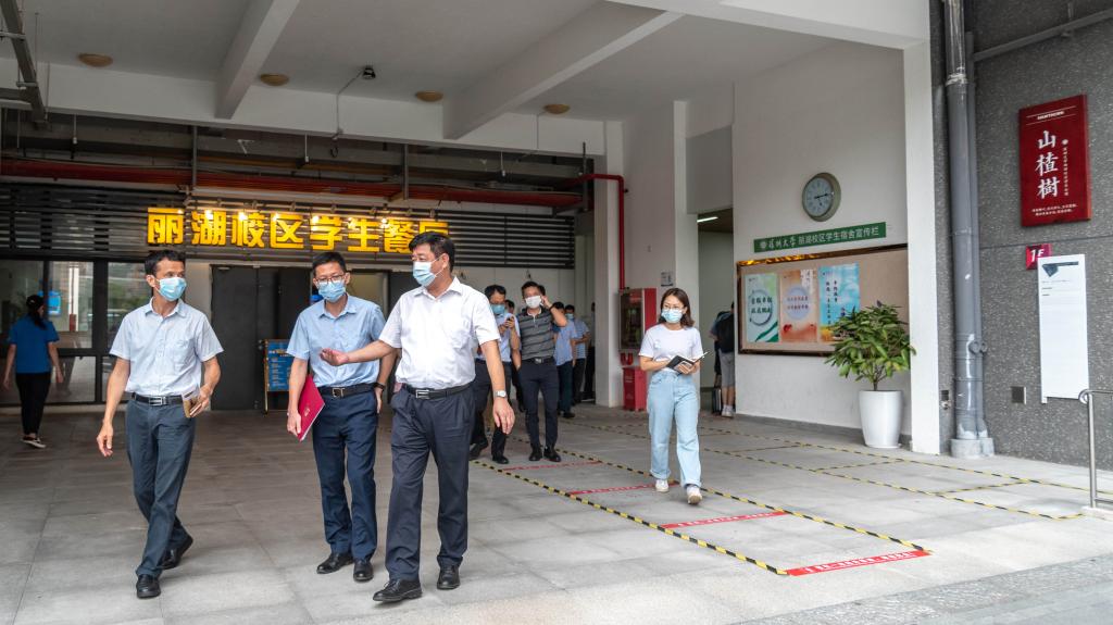 8月28号下午,李永华副校长到丽湖校区检查开学前准备工作,了解校区疫情防控和开学前各项准备情况,党政办公室、后勤部、丽湖校区管理办公室等相关部门负责人陪同检查。