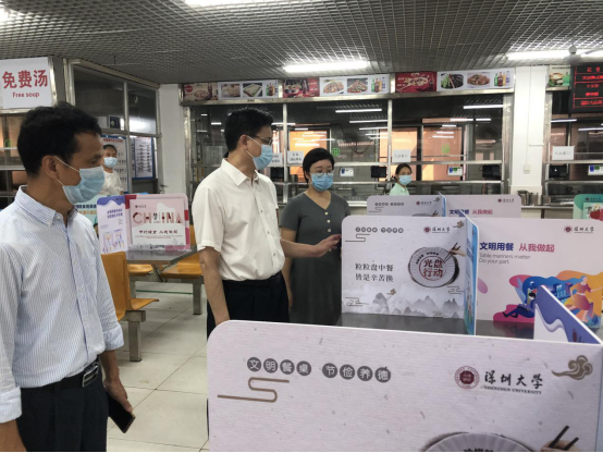 卢成燕一行首先来到荔山餐厅和荔天餐厅检查食堂环境和餐食准备情况。由于天气炎热,半露天式的荔天餐厅温度相对较高,卢成燕对学生就餐情况表示关心,相关负责人表示,荔天餐厅会经常在地面洒水降温,餐厅的电风扇在学生就餐期间也一直运转,尽量为学生创造凉爽的就餐环境。