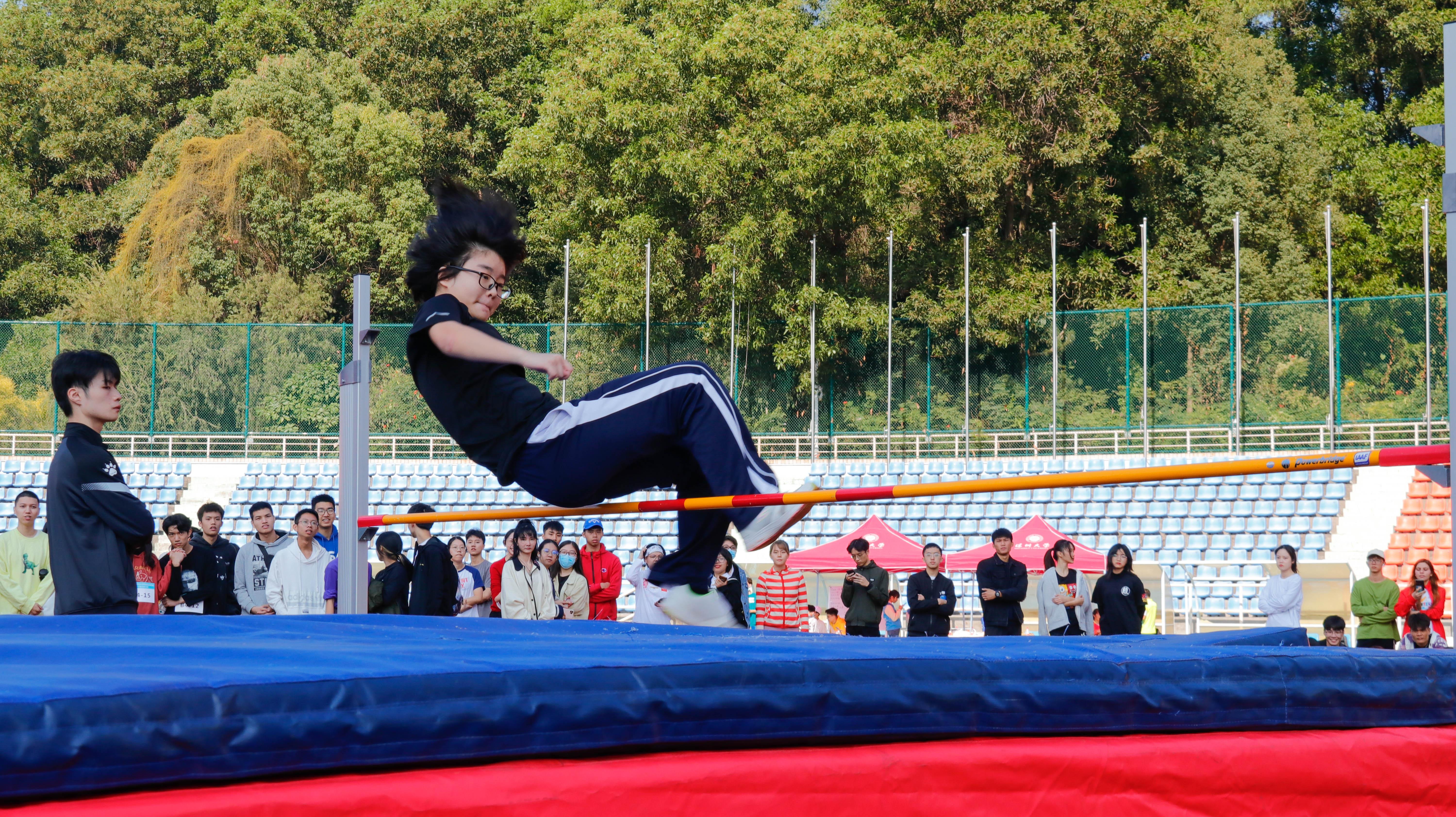 学生组女子跳高决赛比赛中经济学院包揽了学生组女子跳高的亚、季军。初来深大的2020级张雪莹同学在自己的首届大学运动会就获得了跳高亚军的好成绩,她在激动之余还夹杂着一丝意外,“一开始就想报跳高比赛,但初来深大,不知道大家的水平是怎么样的,获得这样的好成绩是对我的一种肯定,很开心!”