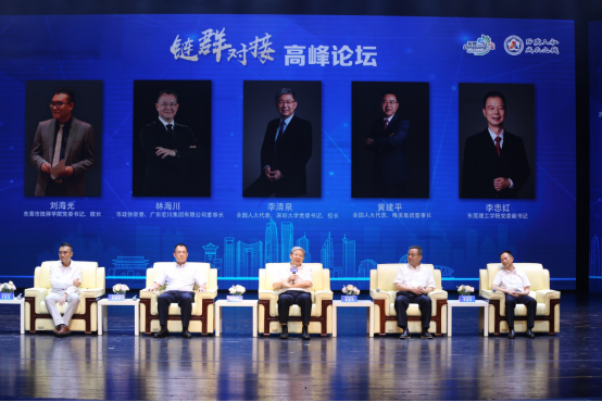 “链群对接”高峰论坛上,李清泉与东莞理工学院党委副书记李忠红,东莞市技师学院院长刘海光,全国人大代表、唯美集团董事长黄建平,东莞市政协常委、民盟东莞市委会副主委、广东宏川集团有限公司董事长林海川等院校专家和企业家代表,围绕深化产教融合、强化校企合作展开深度对话,为东莞如何更好地开展校企合作、实现精准对接建言献策。李清泉表示,校企合作是高校人才培养的重要助力,芒果体育在校企协同培养方面已有不少颇具成效的实践探索,希望未来政府、院校、企业等多方形成合力,营造校企合作的共赢局面。