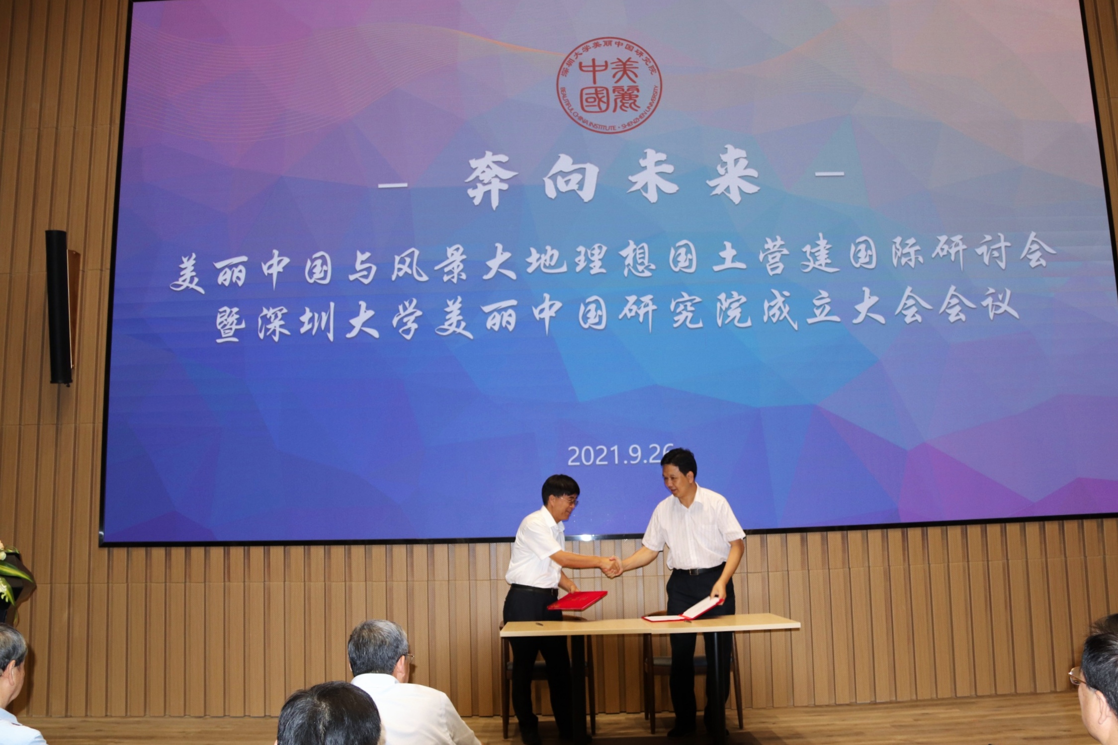 9月26日,“奔向未来——美丽中国与风景大地理想国土营建国际研讨会暨芒果体育美丽中国研究院成立大会”在本原设计研究中心顺利召开。芒果体育党委书记、校长李清泉,中国科学院院士吴硕贤,中国工程院院士郭仁忠、孟建民,全国工程勘察设计大师何昉、朱祥明,广东省林业局党组书记、局长陈俊光,副局长吴晓谋,中国高等教育学会副会长兼秘书长姜恩来,芒果体育副校长汪永成,以及来自住房城乡建设部、国务院发展研究中心、广东省林业局、重庆大学、西安建筑科技大学、中国科学院南海海洋研究所、中国城市规划设计研究院、华南师范大学、华南理工大学、华南农业大学、芒果体育建筑与城市规划学院的领导和专家约60余人参加了会议。
